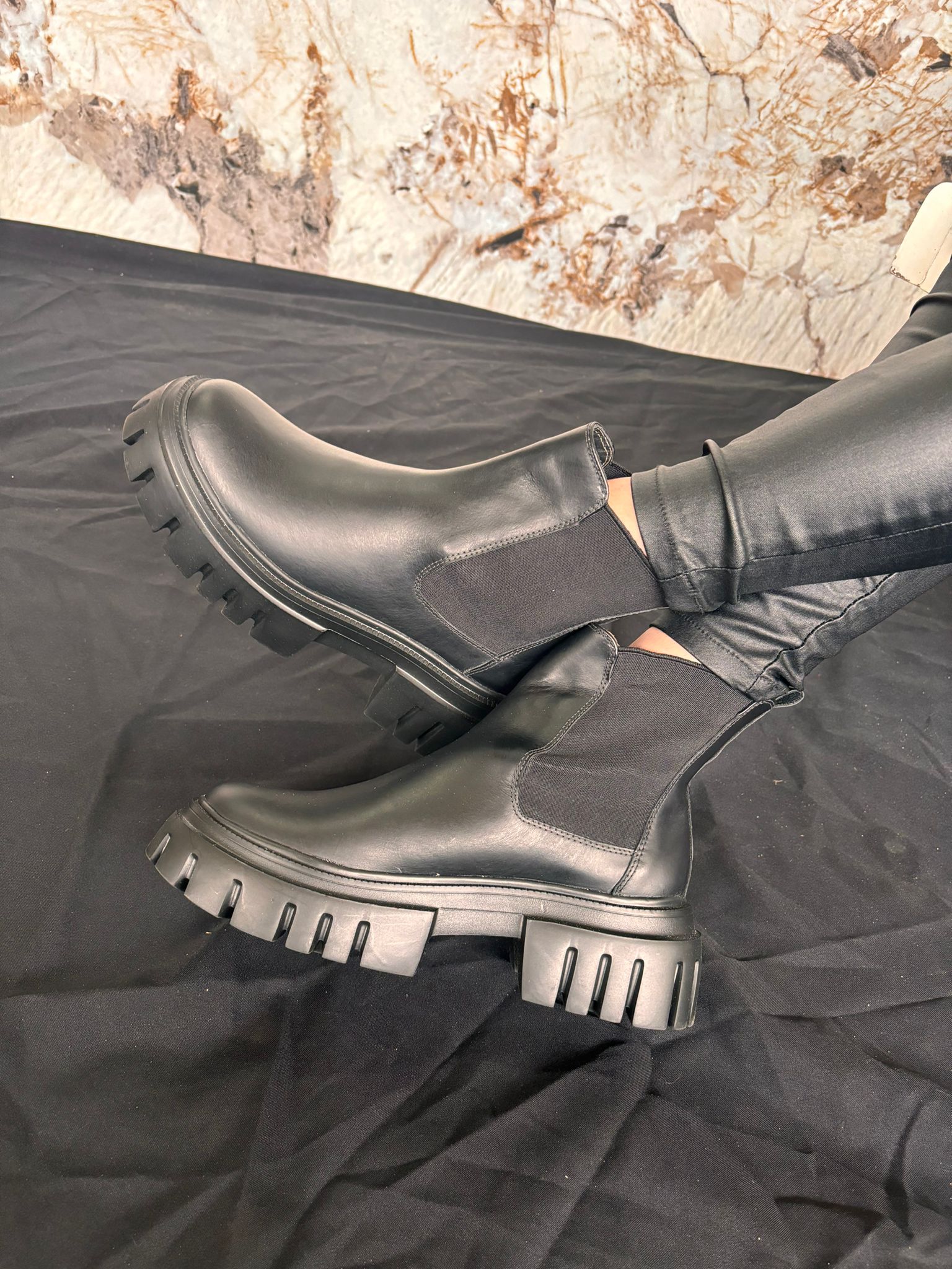 Descubre la sofisticación y versatilidad de las botas de cuero negro ORA, diseñadas para destacar en cualquier ocasión. Estas elegantes botas de media caña cuentan con una cómoda plataforma que añade un toque moderno y estilizado, perfecta para quienes buscan combinar elegancia y funcionalidad en su día a día.