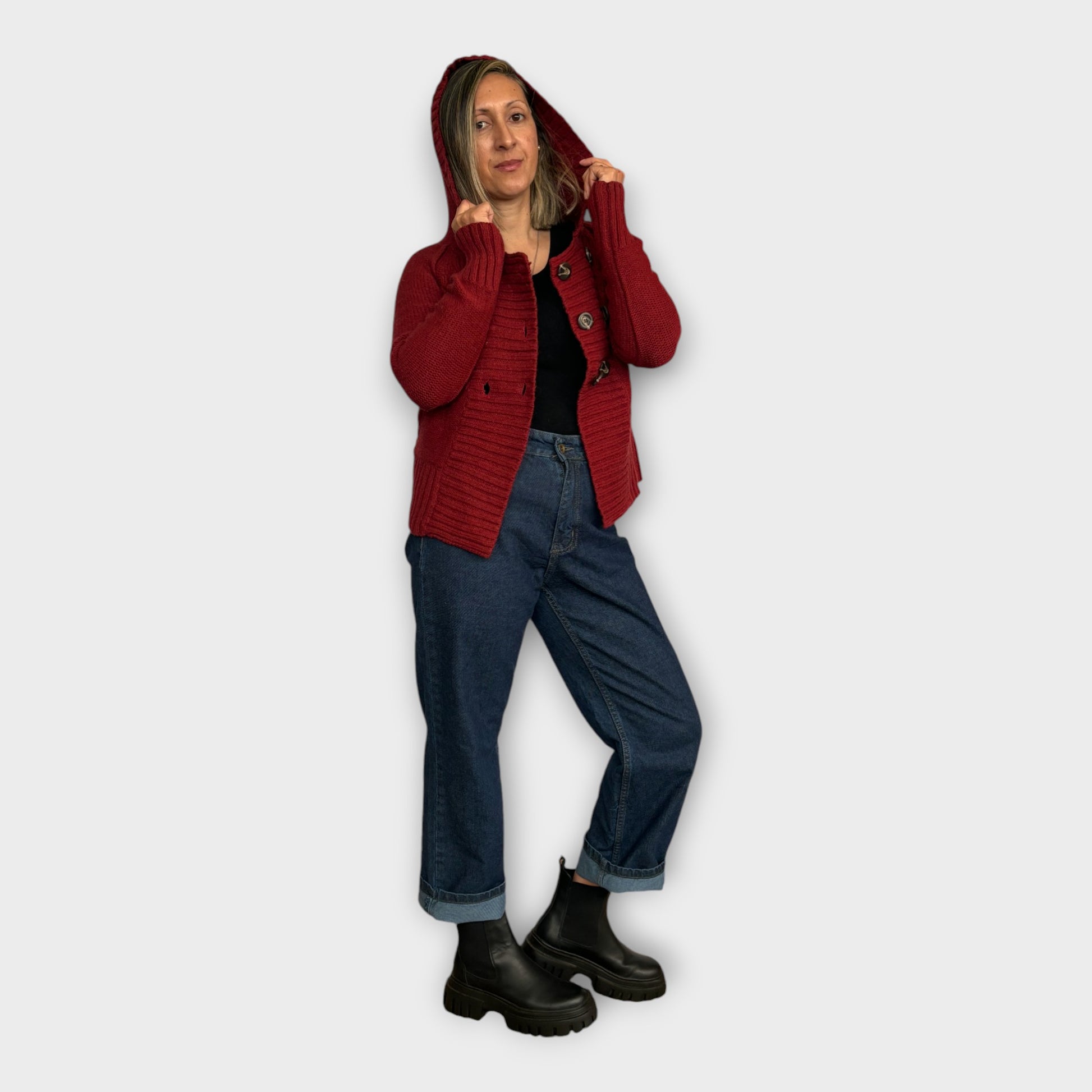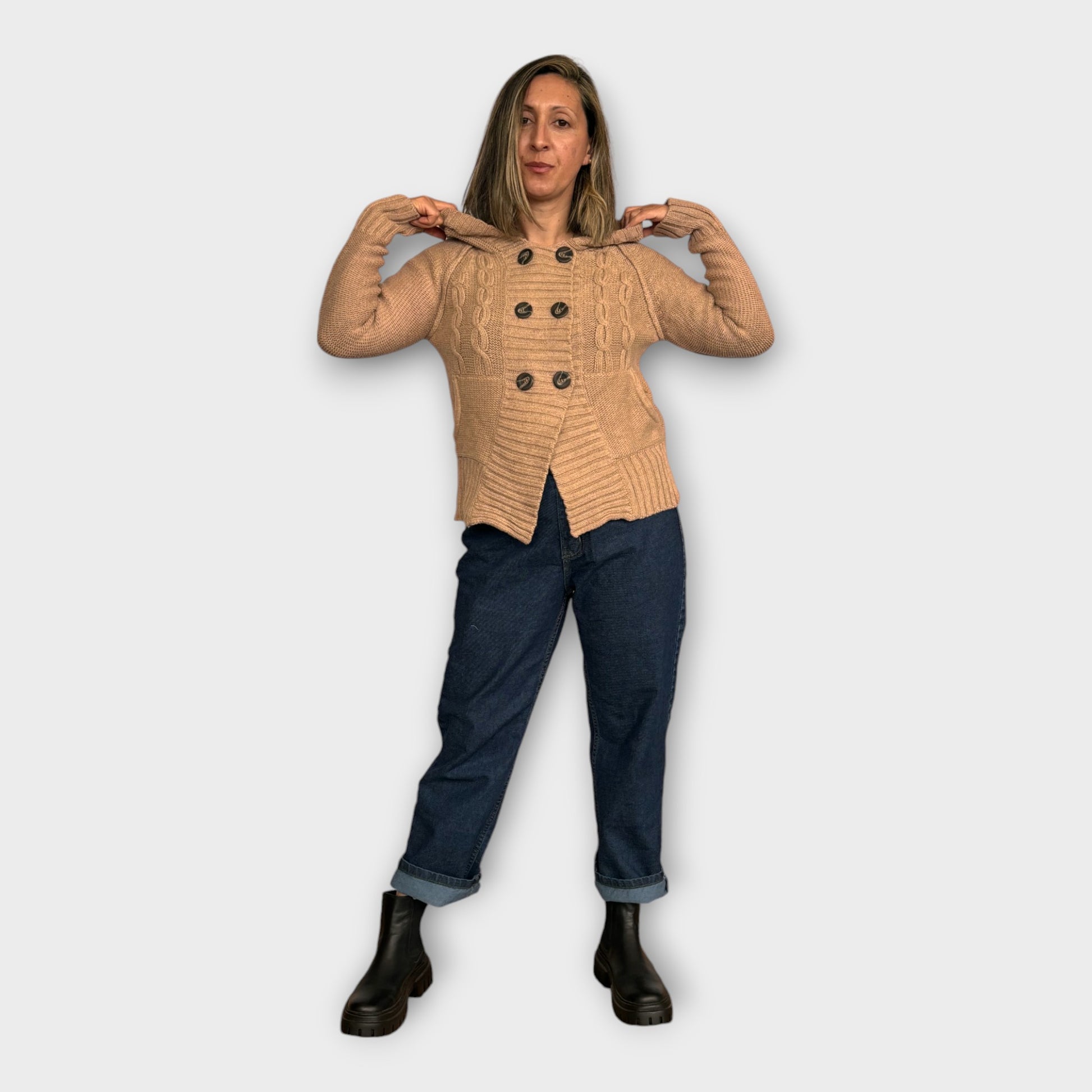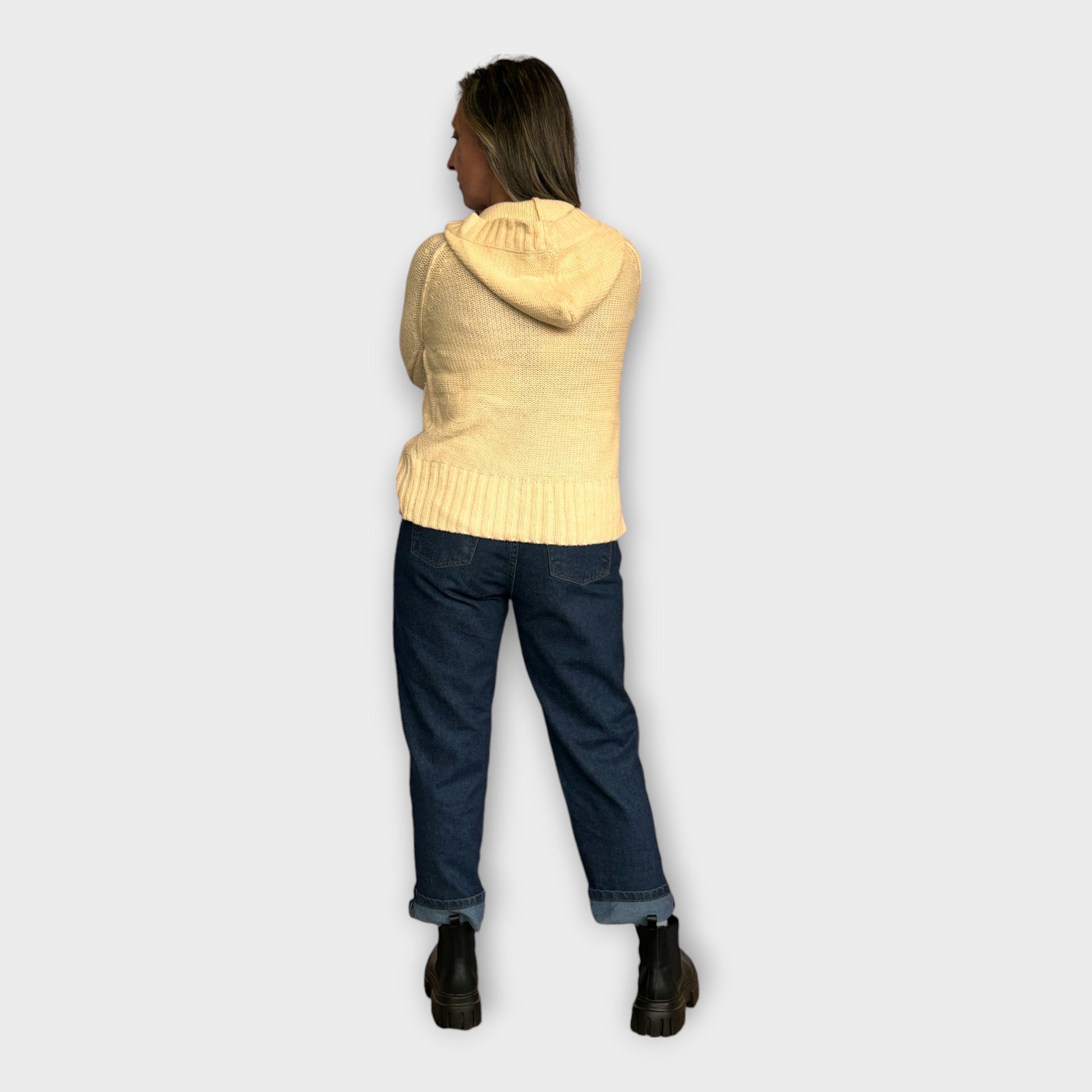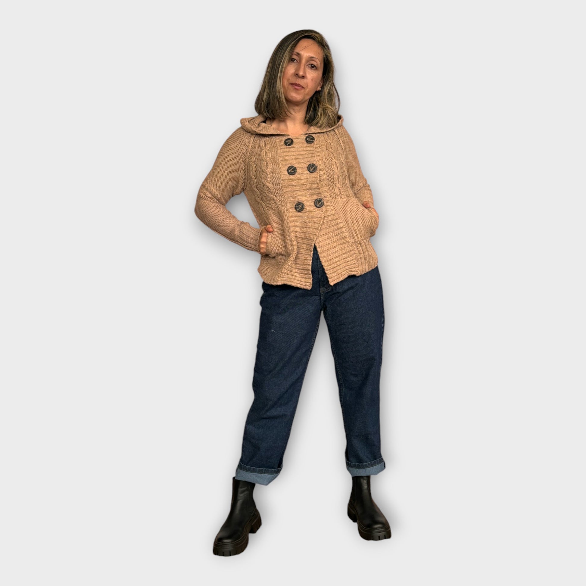 Este saco en hilo es el complemento ideal para las tardecitas frescas de la temporada que se aproxima. Su diseño con capucha y doble hilera de botones le otorga un toque moderno y elegante, perfecto para quienes buscan una prenda ligera pero abrigada. Versátil y fácil de combinar, es ideal para llevar sobre cualquier outfit, brindando estilo y comodidad en los días más frescos. Una pieza imprescindible para la transición entre estaciones.