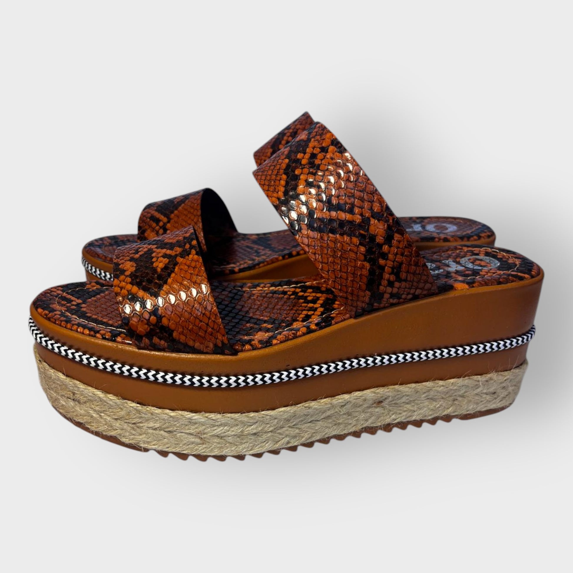 Las sandalias Benita destacan por su diseño moderno y sofisticado, ideal para lucir en los días de verano. Están disponibles en tres colores elegantes: estampado de serpiente marrón, blanco croco y negro liso, que combinan a la perfección con cualquier atuendo casual o semi-formal.