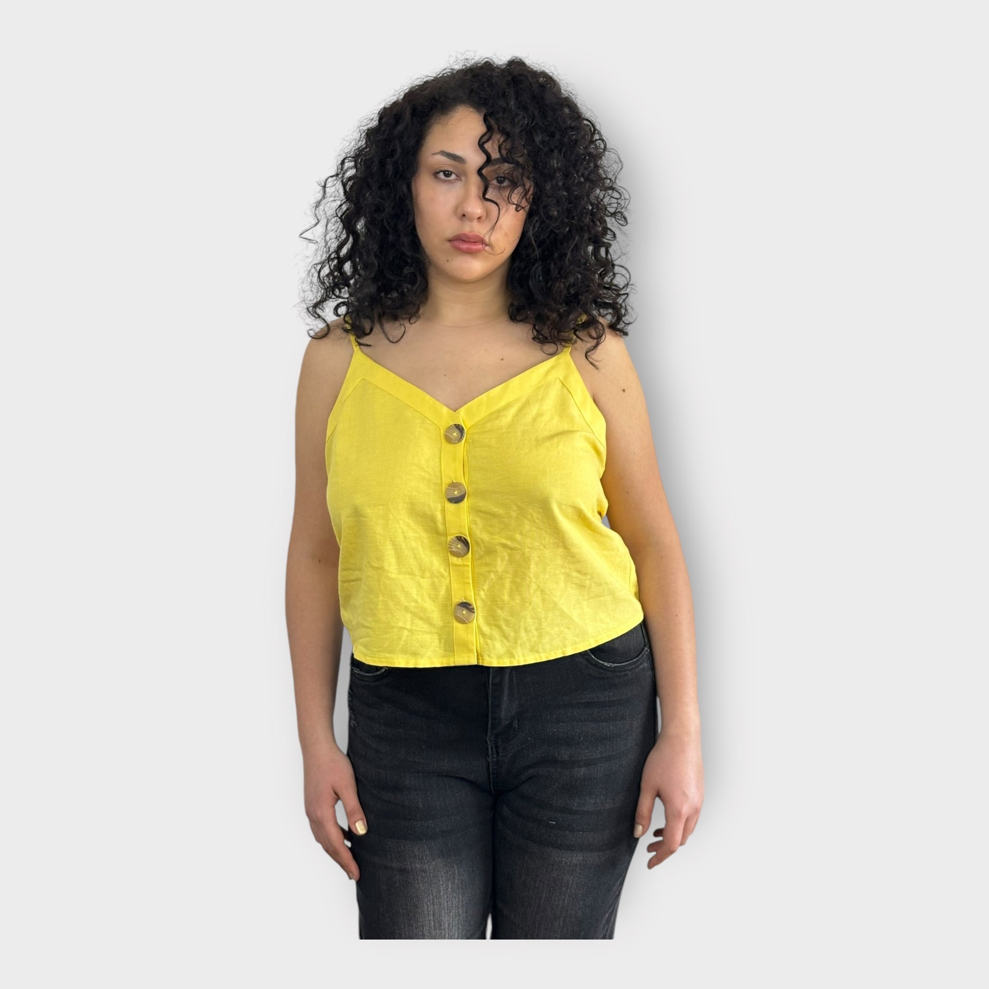El top Luin de ORA es una prenda esencial en tu guardarropa, confeccionada en una suave tela tipo lino que asegura frescura y comodidad. Con breteles y botones en el frente, este diseño combina un estilo clásico con un toque moderno. Disponible en vibrantes colores amarillo, negro y blanco, este top es increíblemente versátil, permitiéndote adaptarlo a distintos looks, ya sea para una salida casual o una ocasión más especial. ¡Incorpora el top Luin a tu colección y disfruta de su elegancia y funcionalidad!